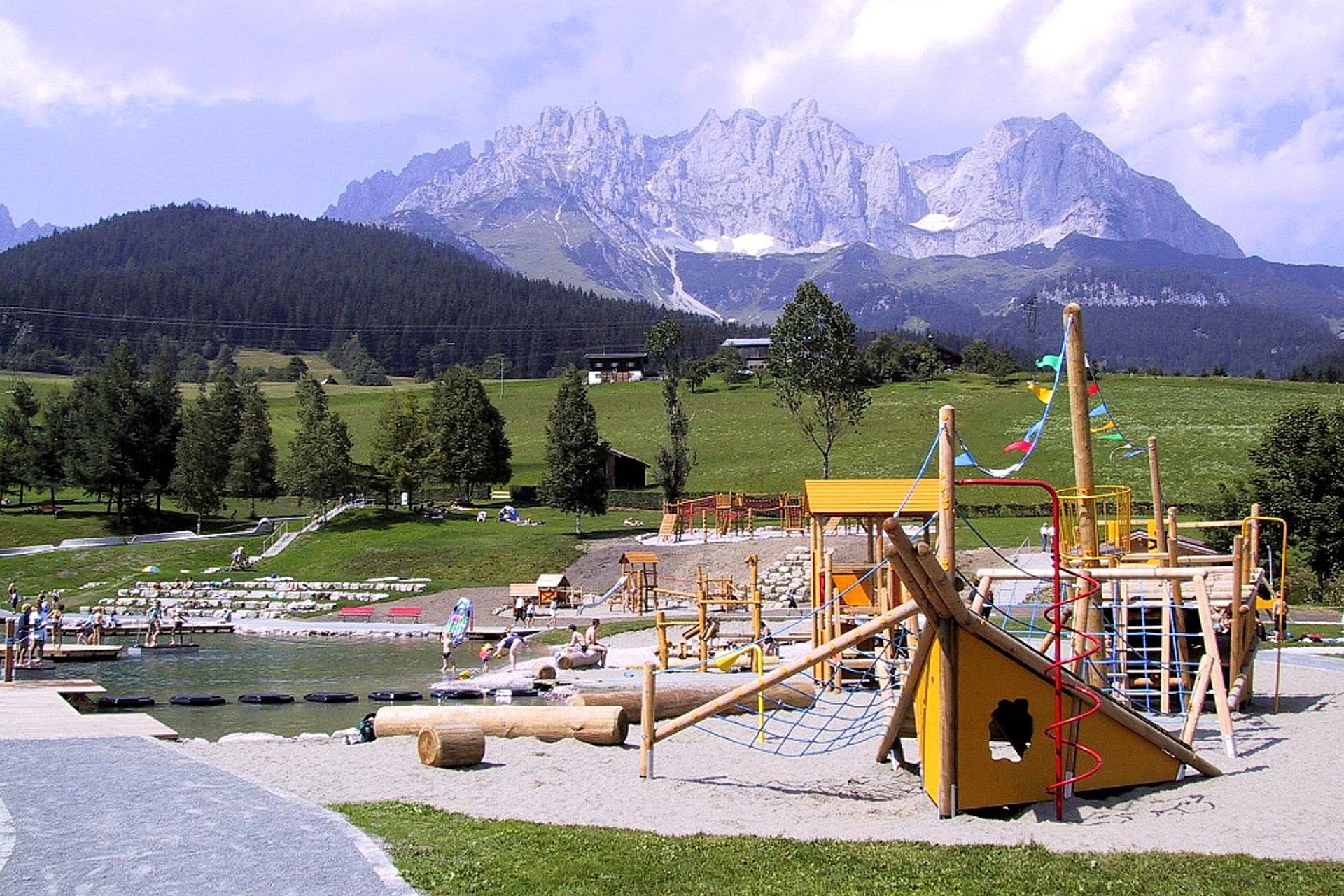 Baden in Going - wild und kaiserlich. Schönster Naturbadesee Tirols, flacher weißer Badestrand mit separater Kinder- und Nichtschwimmerbucht, Erlebnispark mit Tirols längster Freiland-Wasserrutsche und neuer Wellenrutsche, Wasserspiellandschaften, Piratenschiff, Sand- und Bewegungsspiele. "Joe Rassic Beach Arena" 4 Volleyballplätze mit Turnierstandard. Seebuffet. Badebetrieb bei Schönwetter 9.00-19.00 Uhr. Von Mitte Mai-Mitte September! Gratis W-Lan mit Wilder Kaiser GästeCard oder mit Wilder Kaiser BürgerCard.