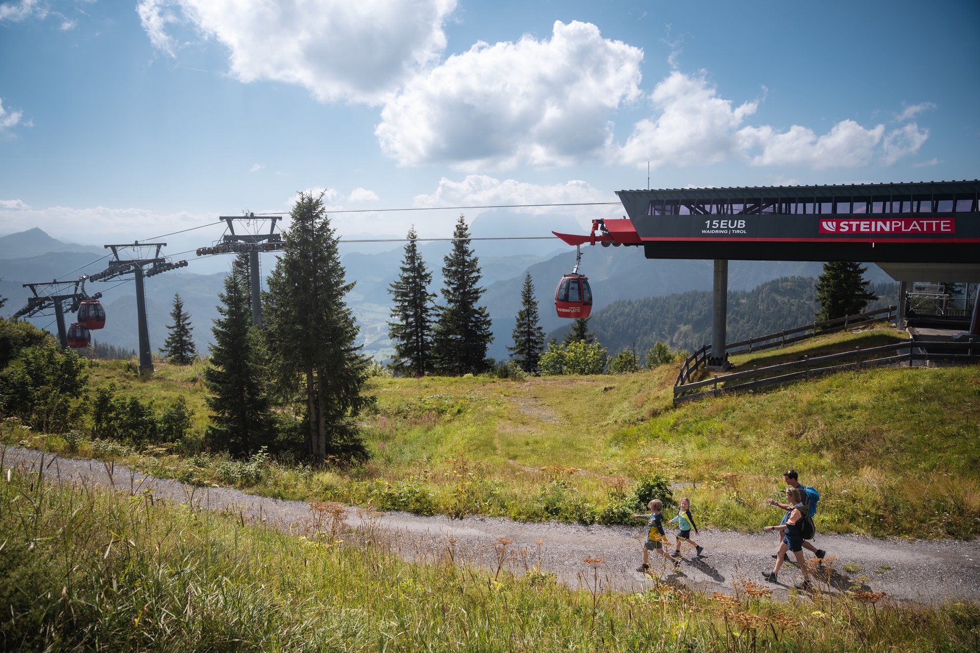 Ein weiteres Highlight ist die Panorama Muschel, ein barrierefreier Ruhebereich aus Lärchenholz mit spektakulärem Blick auf die Tiroler Bergwelt. Hier trifft Erholung auf Naturerlebnis. Neu im Sommer: ein Aktivprogramm mit Yoga, Qi Gong und Fitness-Sessions direkt auf der Muschel. Bewegung, Achtsamkeit und Naturgenuss verschmelzen hier zu einem ganzheitlichen Erlebnis. Weitere Abenteuer genießt man entlang des Triassic Trails, dem Rundwanderweg um den Gipfel der Steinplatte. Dort warten zahlreiche Erlebnisstationen: lebensgroße Dinosaurier, Fossilienfunde in Fischers Korallen-Garten, der Niederseilgarten als spielerischer Hindernisparcours sowie die Aussichtsplattform mit Blick über die alpine Landschaft.