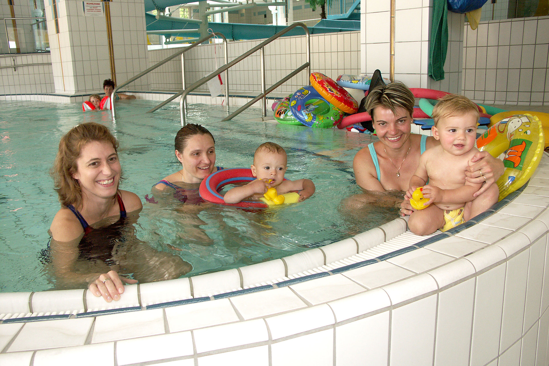 Hallenbad, Dampfbad, Biosauna und Sauna im Grünen und Trampolinanlage sowie Kunsteisbahn lt. Öffnungszeiten. Aqua Fitness, Babyschwimmen, Kindergeburtstage, Schwimmkurse, Fitness Corner, Solarium, Gymnastik, Pediküre, Massage und gepflegte Gastronomie.