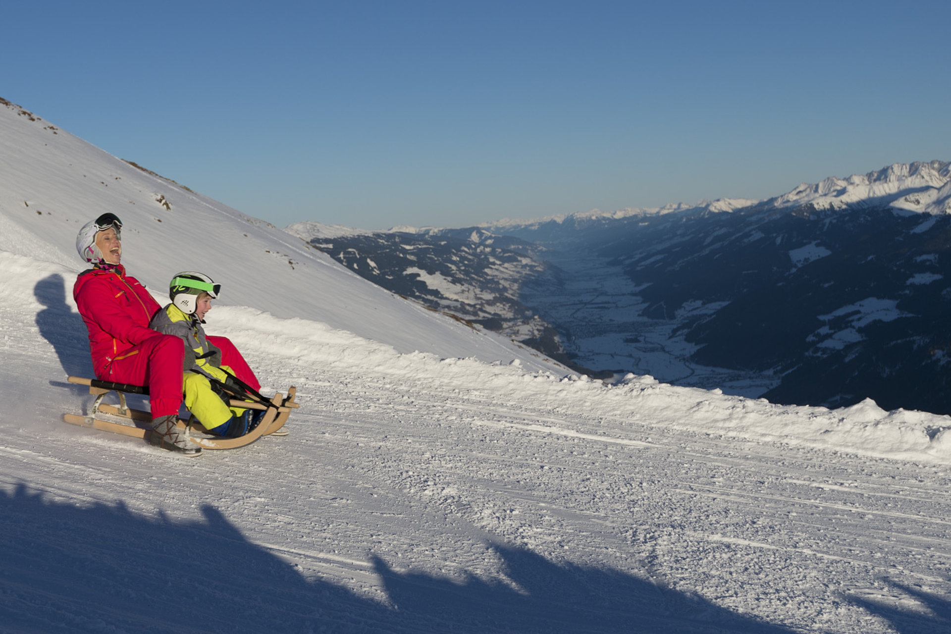 Von den Bergstationen führen nicht nur knackige Talabfahrten nach Neukirchen und Bramberg, sondern auch die längste beleuchtete Rodelbahn der Welt. Die kurven- und kufenreichen 14 Kilometer und 1.300 Höhenmeter sind täglich bis 22 Uhr beleuchtet und laden zu einer Rodelpartie ein. Jeden Tag können Rodler mit den Bahnen zum Startpunkt auf den Wildkogel fahren. Jeweils dienstags und freitags ist das mit der Smaragdbahn in Bramberg sogar bis 18.30 Uhr möglich. Für die Talfahrt auf der Rodel sind zumindest 40 Minuten einzuplanen – diverse Zwischenstopps und Hüttenschwünge unterwegs nicht mitgerechnet.