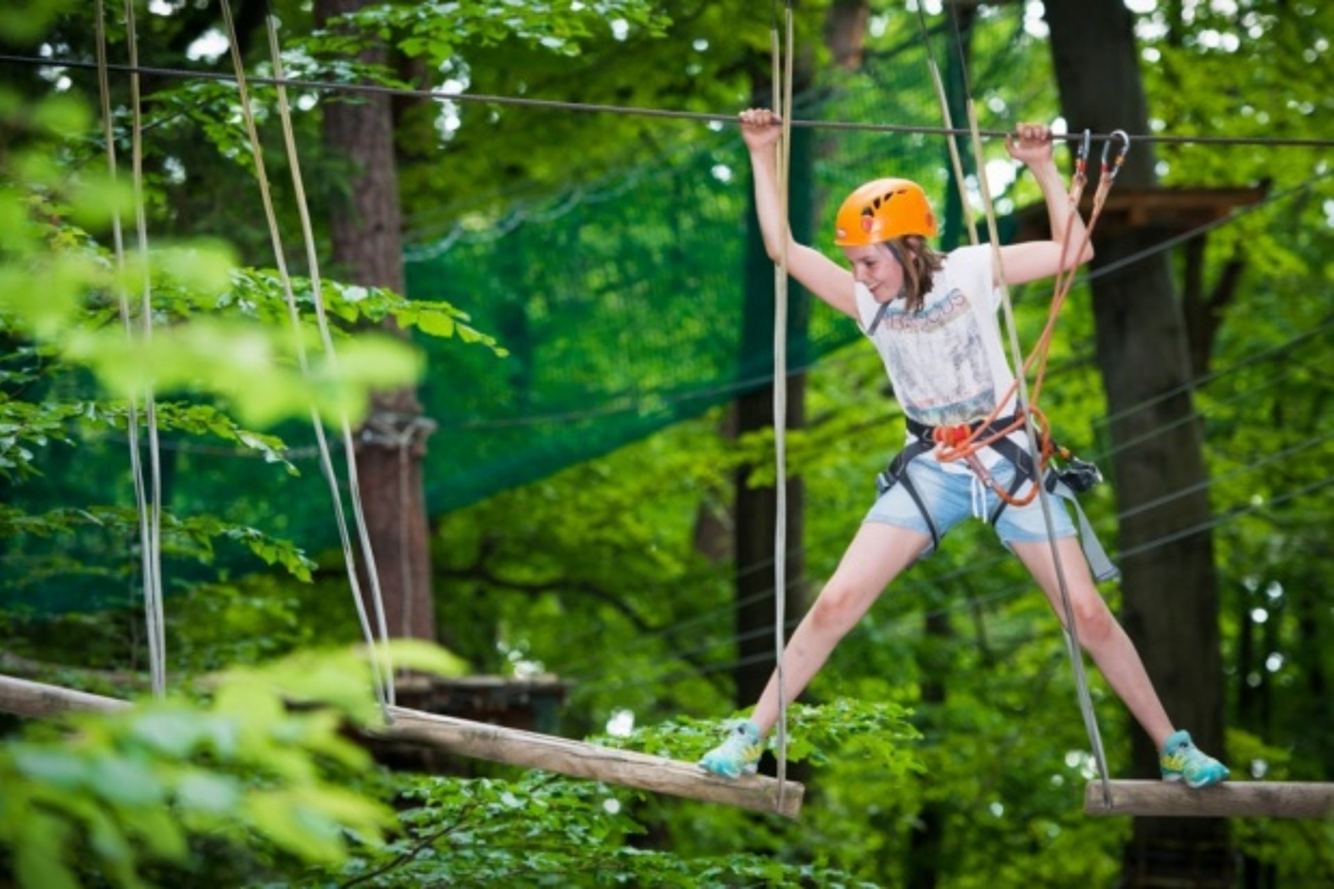 Mitten in Graz im Leechwald erwartet Eltern und Kinder ein aufregendes Naturerlebnis im Wiki Adventure Park an Hilmteich. Insgesamt sieben abwechslungsreiche, getrennt begehbare Parcours gilt es für die Familien in dem terrassenförmig angelegten Wald in verschiedenen Höhenstufen zu absolvieren. Zwischendurch lohnt sich aus luftiger Höhe ein Blick auf die Parklandschaft rund um den Hilmteich, bevor es weiter zur nächsten Station geht. Insgesamt 90 Hindernisse versprechen ein abwechslungsreiches Klettererlebnis im Wiki Adventure Park in Graz am Hilmteich. Ausgerüstet mit Helm und Klettergurt werden Eltern und Kinder zunächst durch einen erfahrenen Trainer eingeschult und müssen einen Probeparcours absolvieren. Erst im Anschluss an diese Einschulung dürfen die Familien die verschiedenen Parcours in 2m, 3m, 4m, 6m, und 10m selbstständig entdecken und ausprobieren.