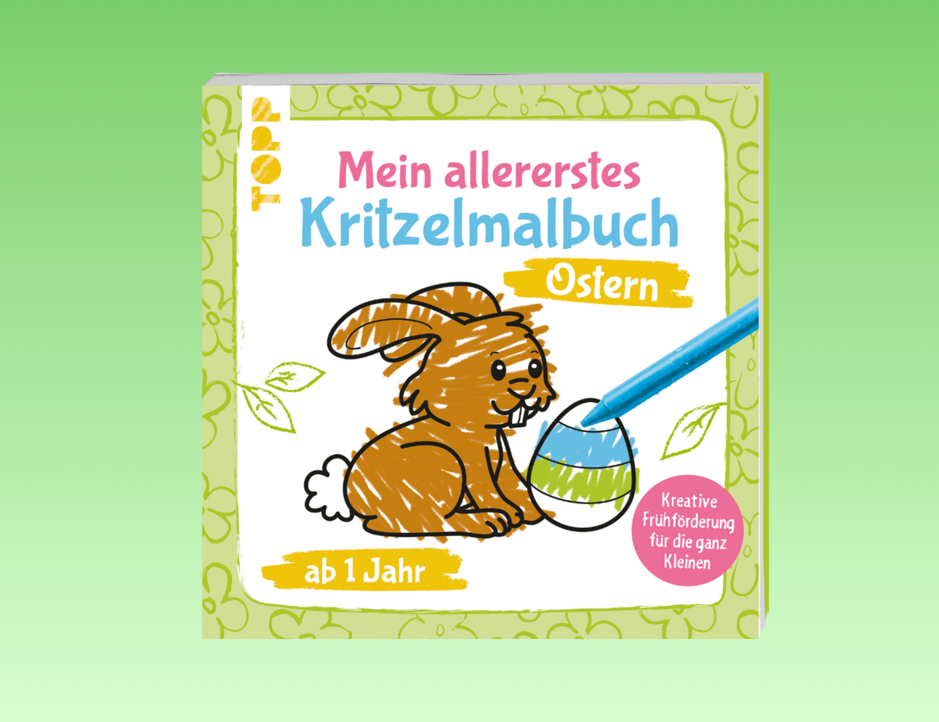 Kritzelmalbuch“ mit Ostermotiven wurde speziell für kleine Hände entwickelt: Kinder können mit Wachsmalstiften oder Fingerfarben bunte Kunstwerke rund um Ostern und den Frühling gestalten.
