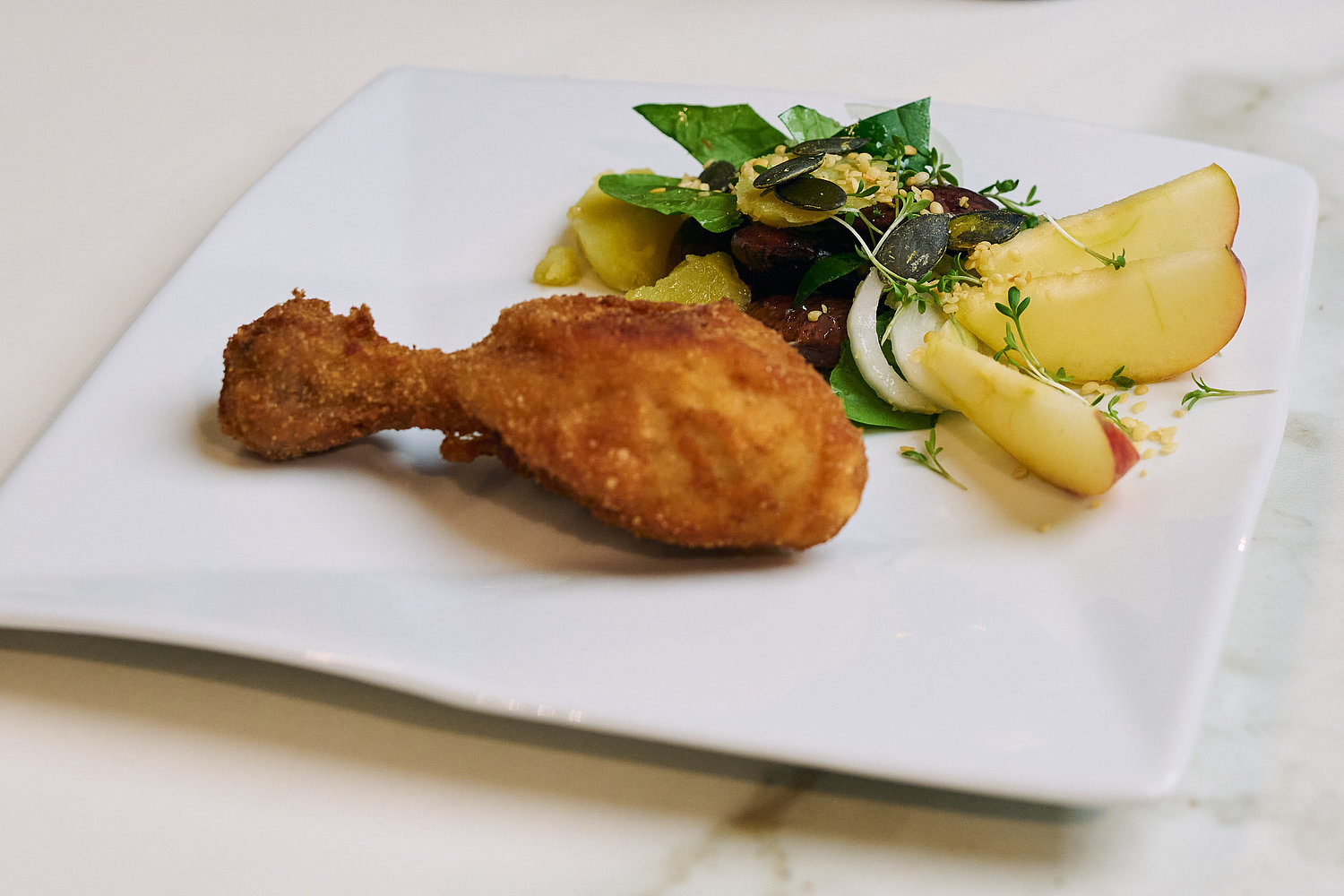 Klassisch gäbe es zu Backhendl jetzt einen Erdäpfel-Vogerl-Salat, aber wir mögen es ein bisschen ausgefallener.