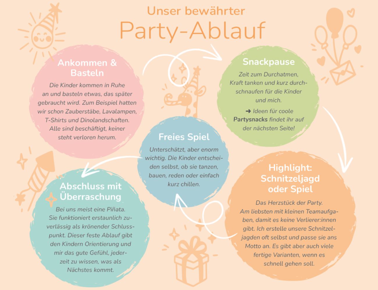 Ich gebe es zu: Ich liebe Checklisten. Nicht aus Perfektionismus, sondern aus Selbstschutz. Eine kurze Liste mit Essen, Spielen, Material und Ablauf verhindert, dass ich am Geburtstag plötzlich merke, dass ich etwas Wichtiges vergessen habe. Zusätzlich habe ich immer ein kleines Notfallpaket bereit: