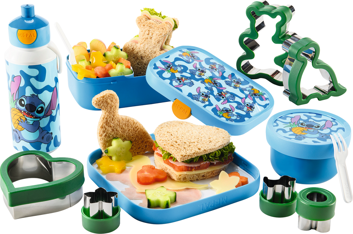 Die robuste Brotdose Campus bietet ausreichend Platz für das Jausen-Weckerl. Ergänzend sorgt die auslaufsichere Trinkflasche Pop‑Up 400 ml mit kinderleichtem Verschluss und Trageschlaufe für erfrischende Momente unterwegs. Abgerundet wird das Set durch die Fruchtbox Campus, die gesunde Snacks frisch hält sowie ein sechsteiliges Sandwich-Ausstecher-Set, mit dem das Frühstück in Form gebracht wird.