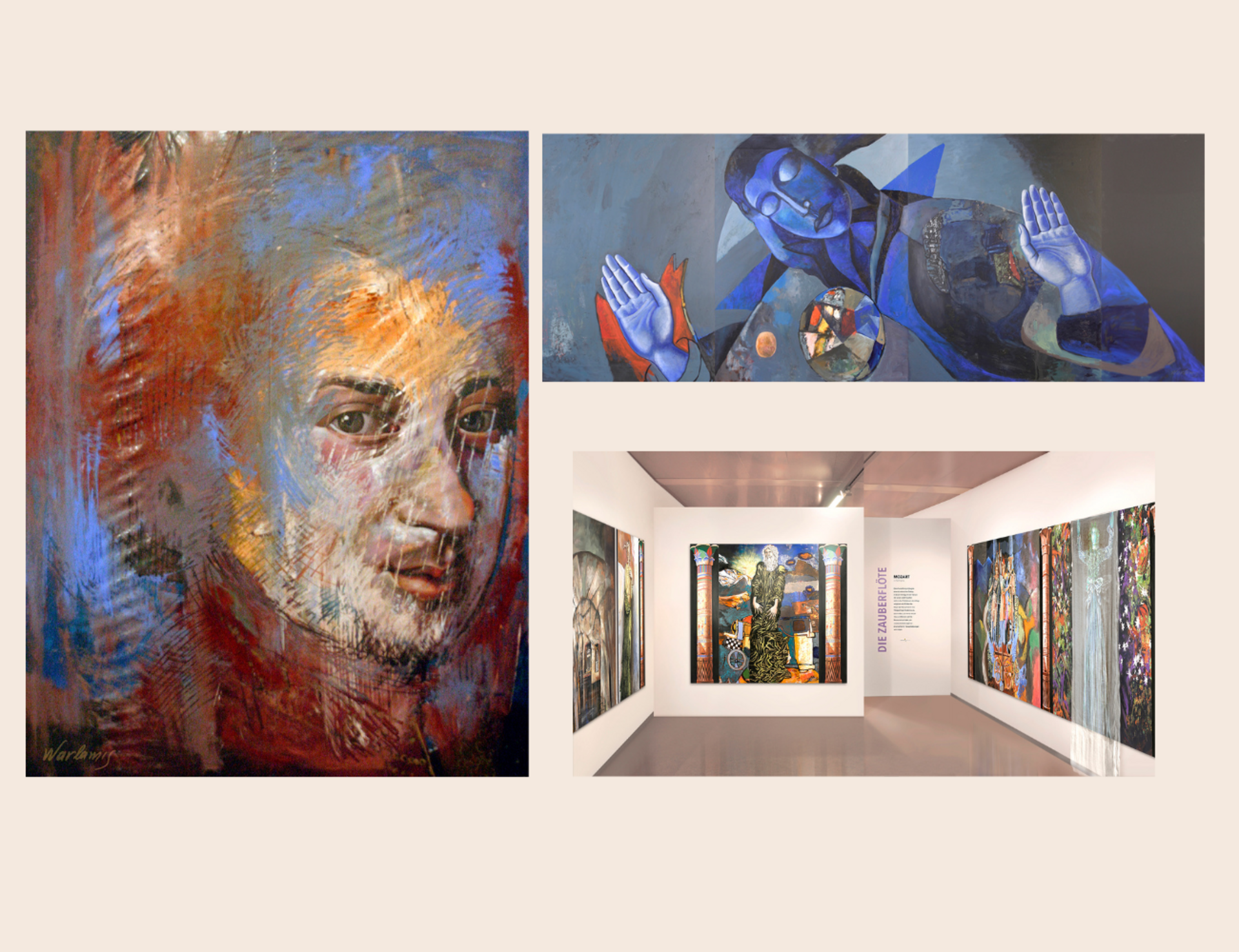 Das Ausstellungsjahr 2026 im Kunstmuseum Schrems steht ganz im Zeichen von W. A. Mozart. Der Universalkünstler und Museumsgründer Makis Warlamis hat sich über viele Jahre intensiv mit Mozarts Musik auseinandergesetzt und sie in eine eindrucksvolle Bilderwelt übersetzt. Für Warlamis ist Mozart eine unerschöpfliche Inspirationsquelle – seine Musik Ausdruck von Lebensbejahung, geistiger Kraft und menschlicher Tiefe.