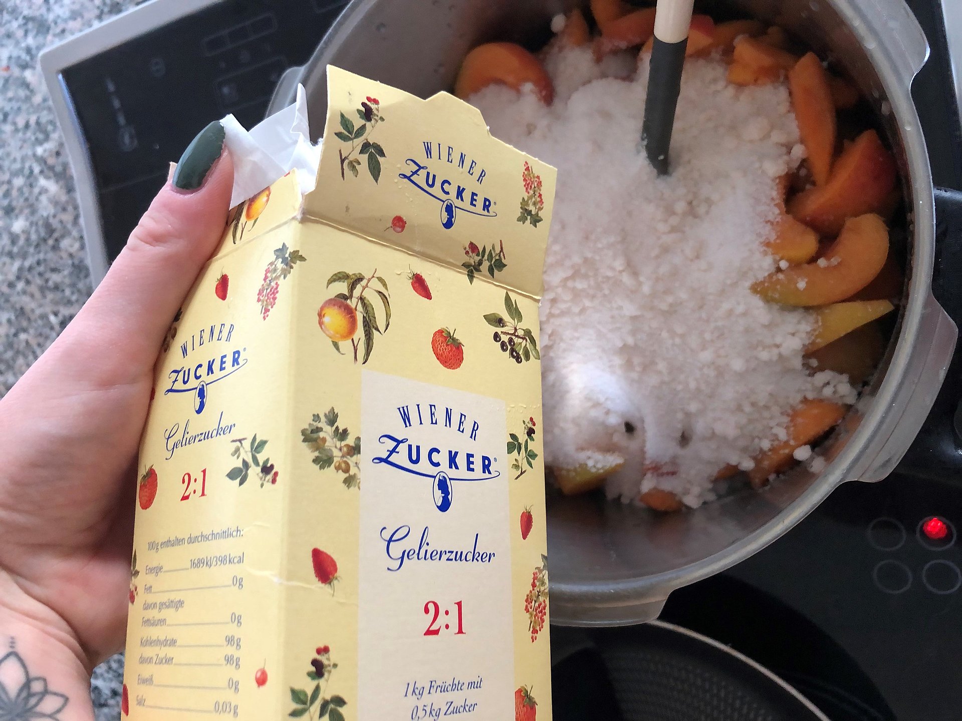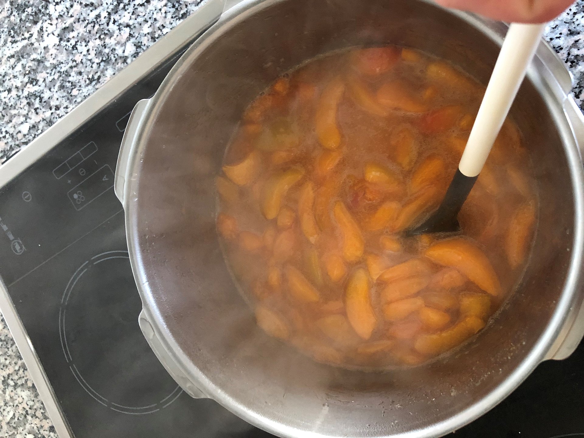 4. Die Marillen mit dem Zucker zum Kochen bringen.