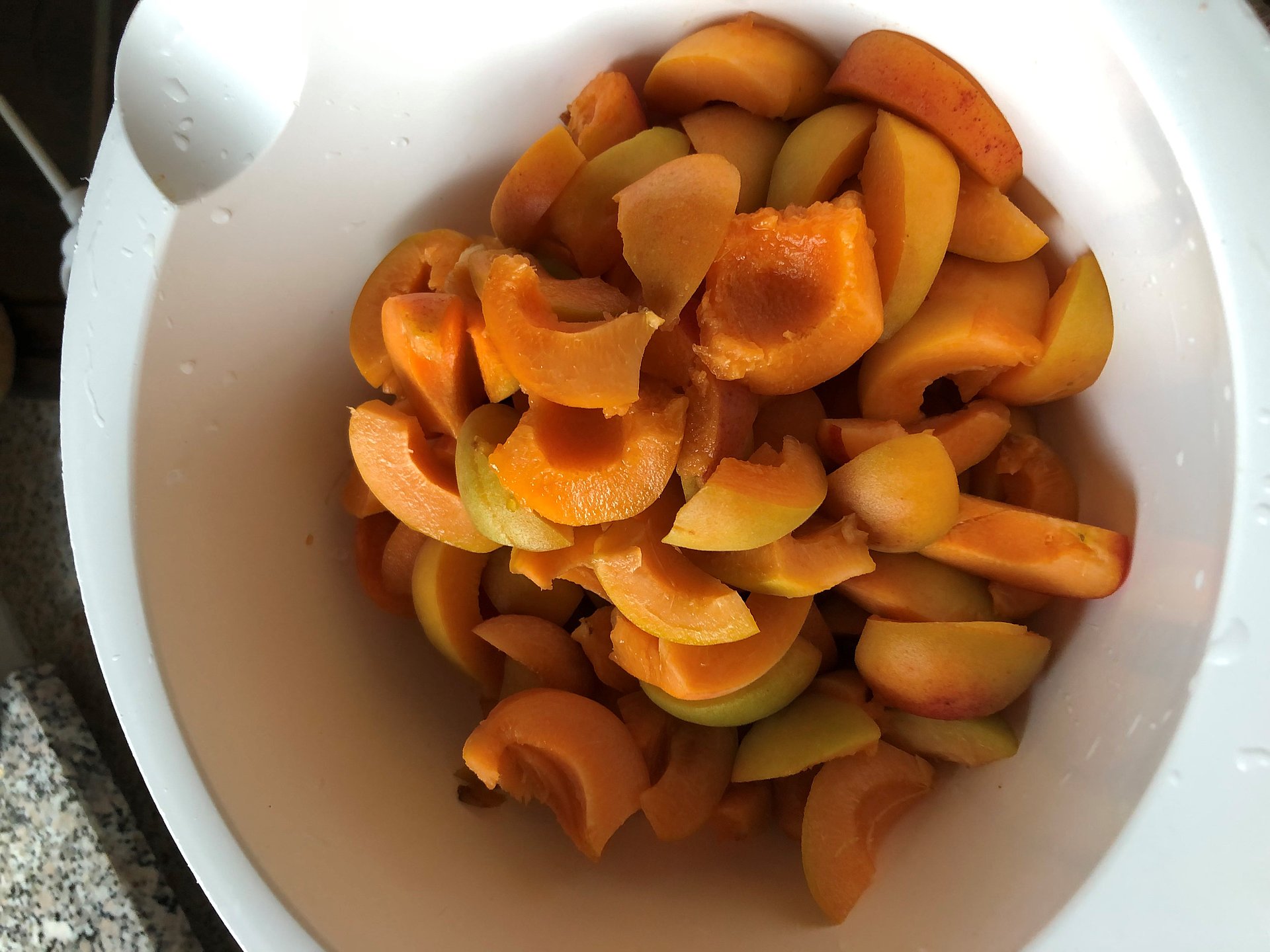 3. Die Marillen mit Zucker vermischen und kurz gut durchziehen lassen.