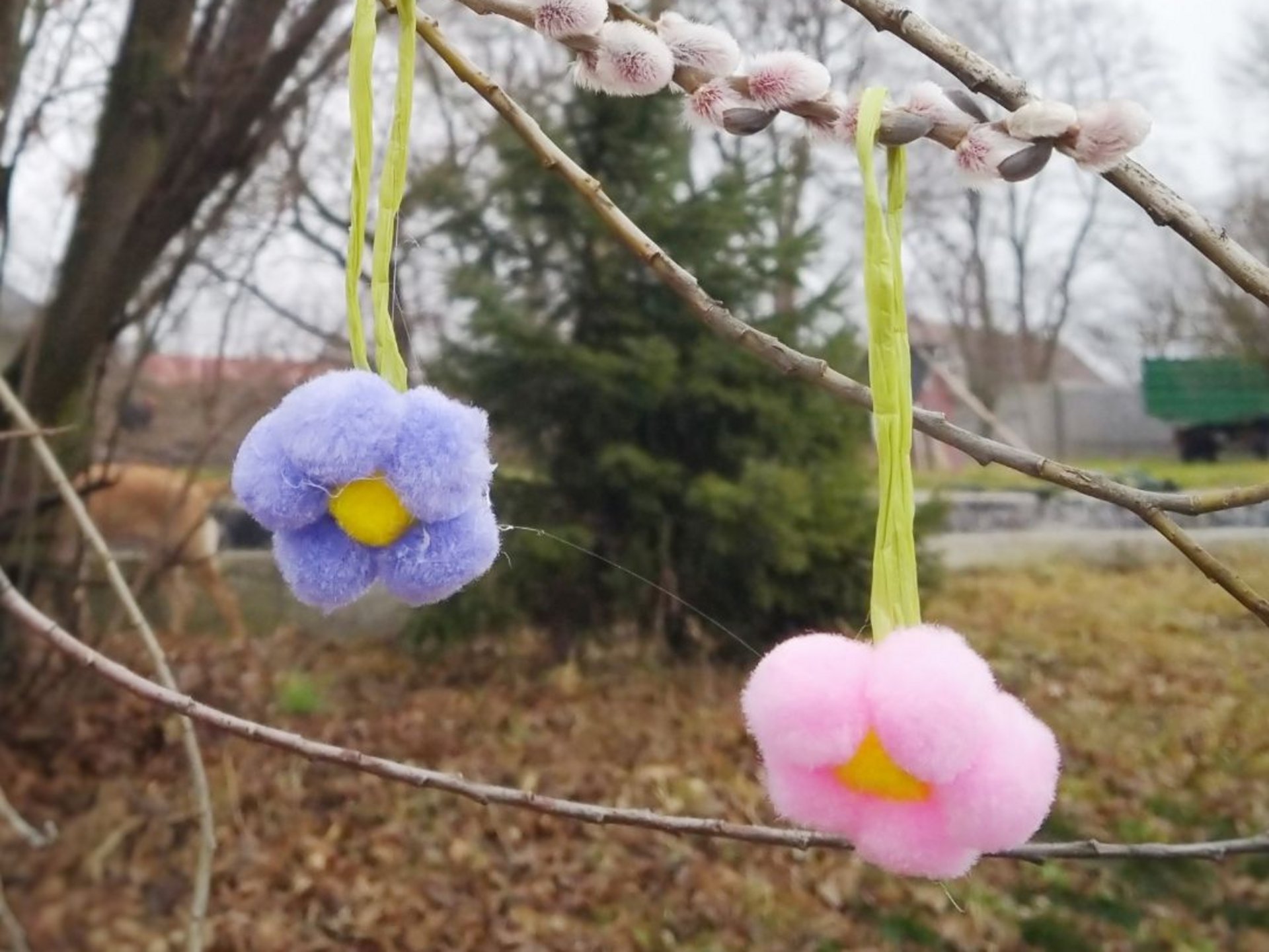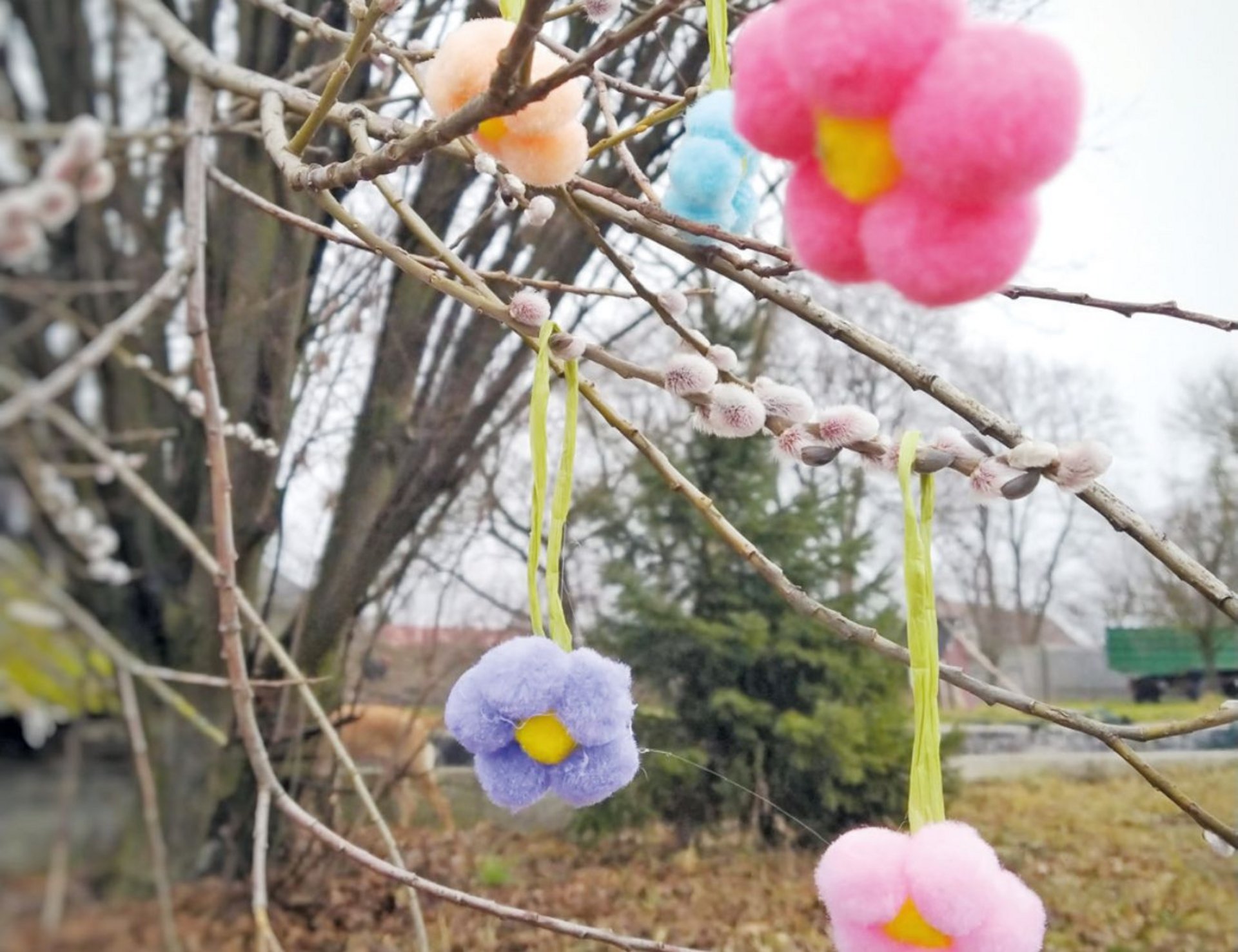 Die ersten Blumen und Blüten lassen noch auf sich warten? Dann zaubere dir einfach deine eigene Blumendeko aus Bommeln.