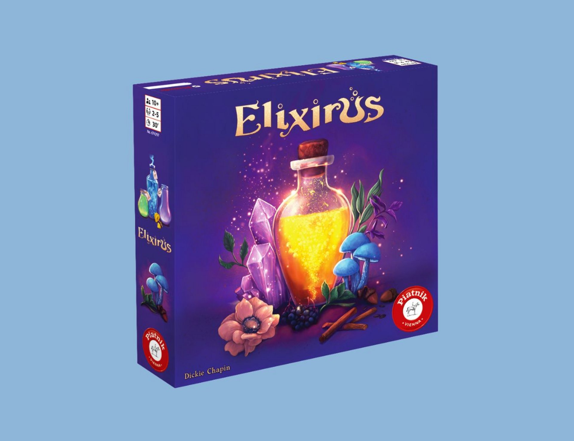 Wer braut den besten Zaubertrank und beeindruckt damit Meister Elixirus am meisten? Vielleicht mit einem Liebestrank, einer Mischung für Vitalität oder einem Elixier zur Heilung? Das magische Familienspiel „Elixirus“ von Autor Dickie Chapin, erschienen im Wiener Spieleverlag Piatnik, verzaubert mit taktischen Herausforderungen und atmosphärischem Design und erfordert auch einen Sinn für das richtige Timing.