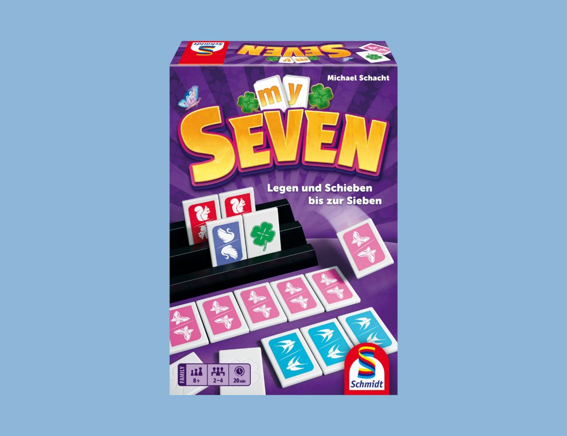 „My Seven“ ist ein taktisches Familienspiel für zwei bis vier Personen ab acht Jahren. Ziel ist es, im Laufe des Spiels zwei Tierfamilien mit jeweils sieben Karten zu bilden, um das Spiel zu beenden. Jede Person legt die eigenen Tiersteine in die persönliche Auslage und hat dabei stets ein Auge auf die Auslagen der anderen. Denn der clevere Zug findet oft nicht nur mit der eigenen Hand, sondern auch mit den bereits ausgelegten Tiersteinen der Mitspielenden, statt.