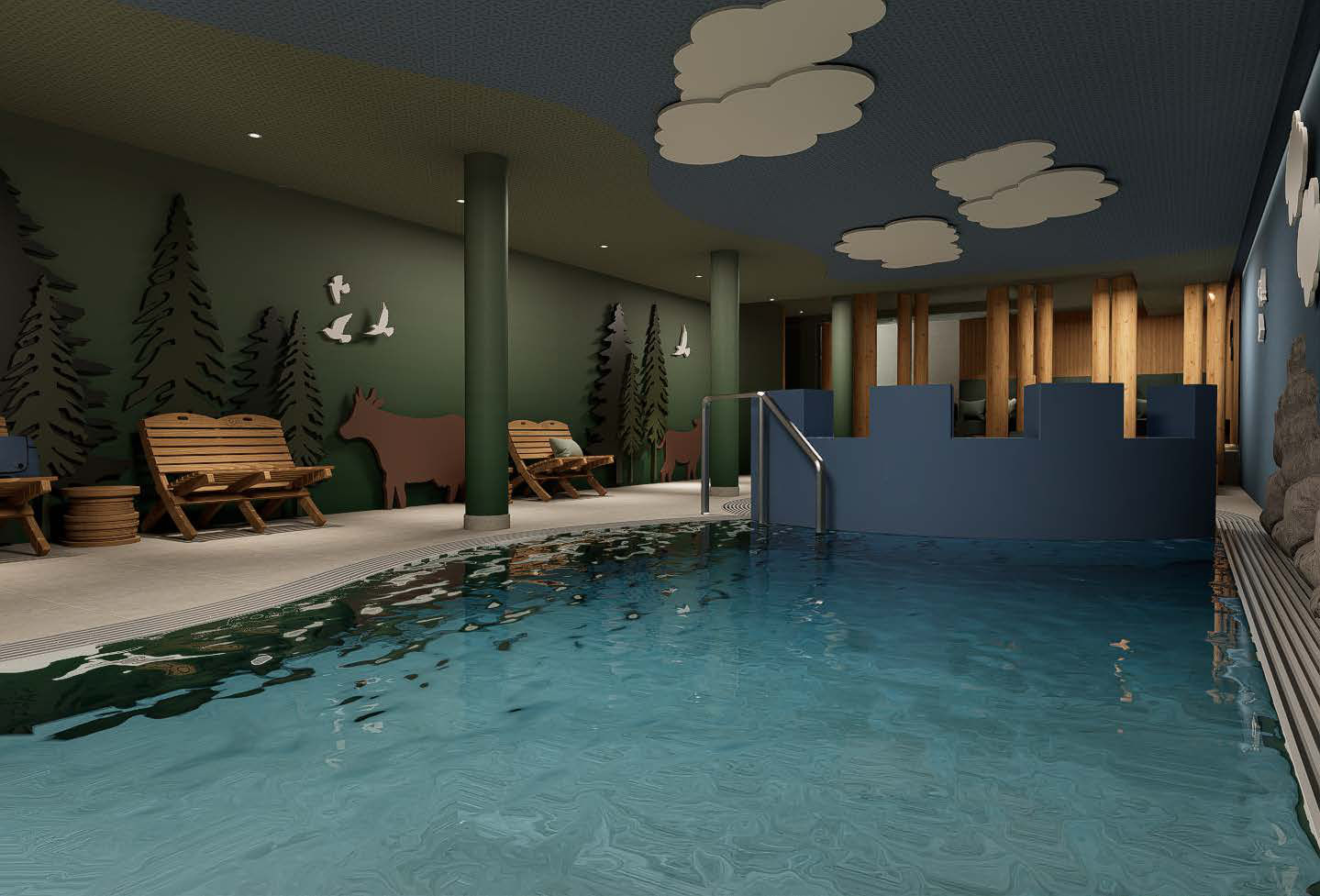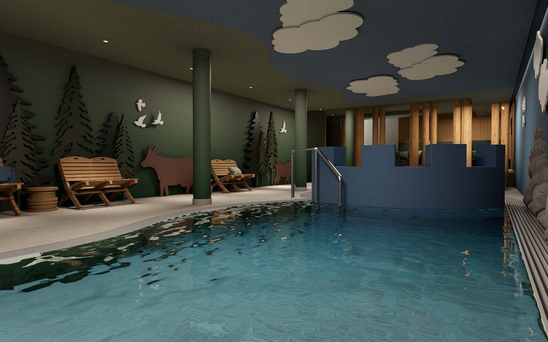 Herzstück des Hauses ist die große Wellness- und Badelandschaft, die speziell auf Familien abgestimmt ist: ein großzügiger Indoor-Pool, ein eigenes Kinderschwimmbad mit Rutschen sowie ein moderner Spa-Bereich mit Sauna, Dampfbad und Ruhezonen laden zum Entspannen ein. Während die Eltern im Adults only Panorama SPA mit Infinity-Pool neue Energie tanken, erleben die Kinder im Happy-Club spannende Abenteuer – von kreativen Workshops über Action im Indoor-Spielbereich bis hin zu geführten Outdoor-Aktivitäten im Schnee oder in den Bergen.