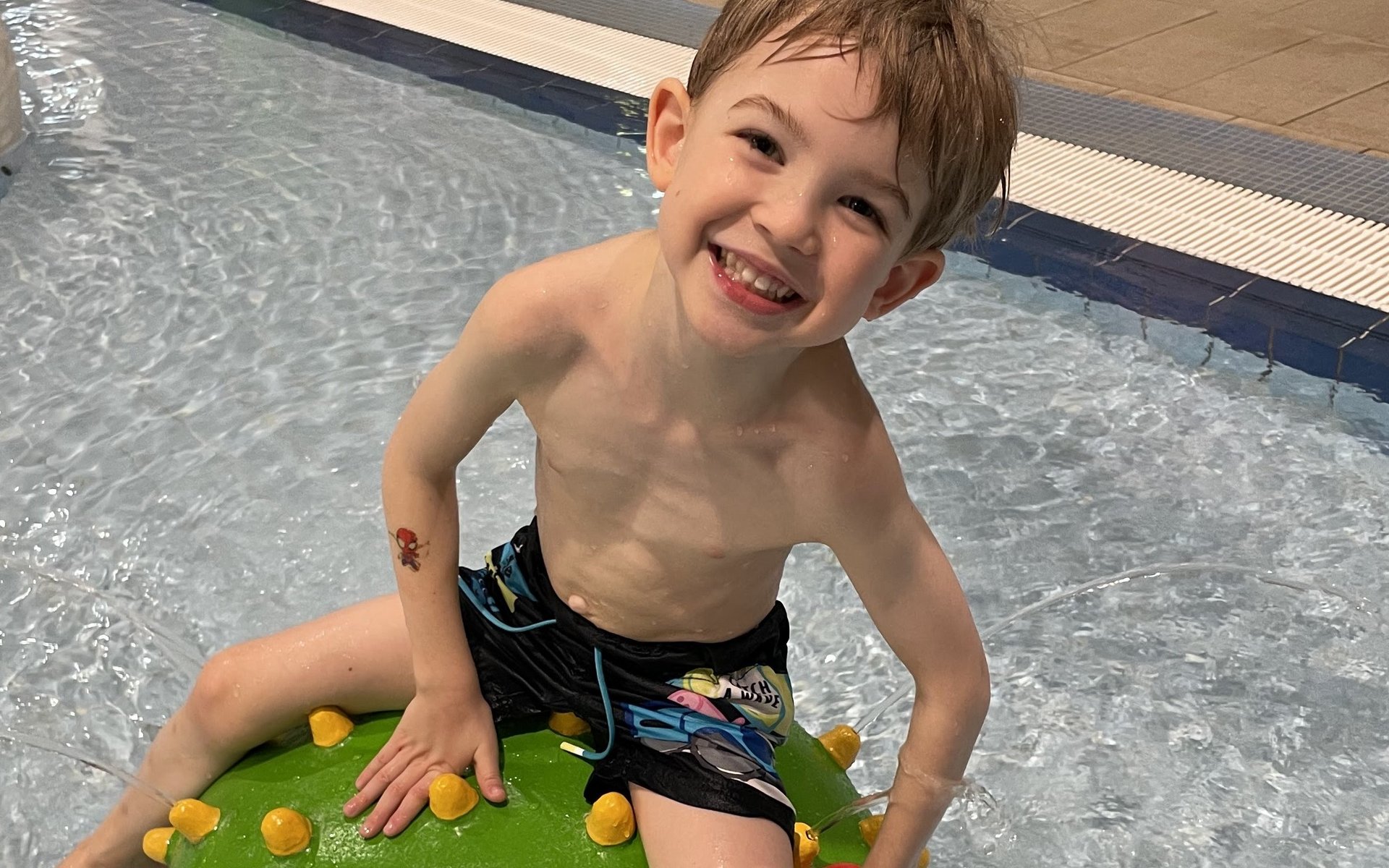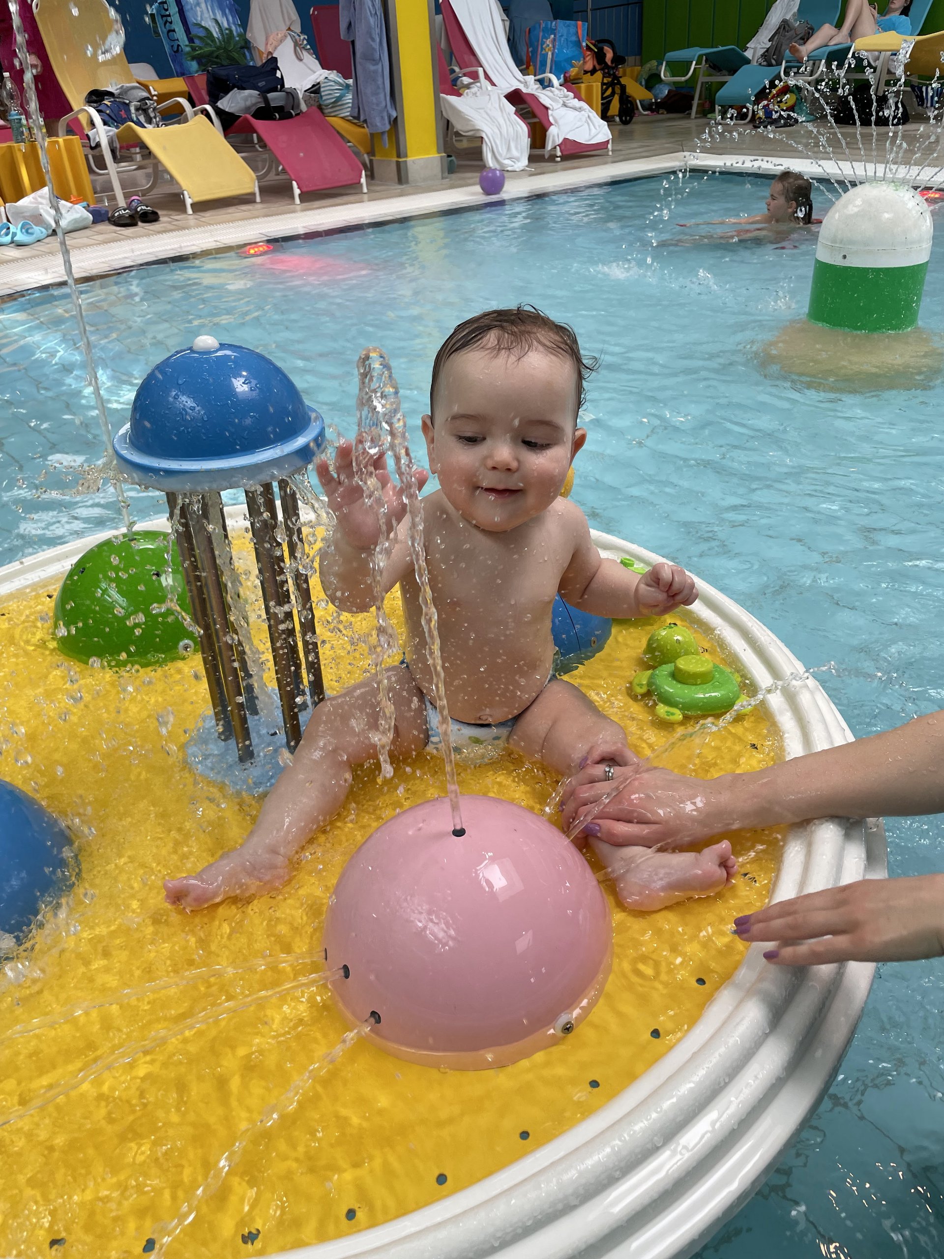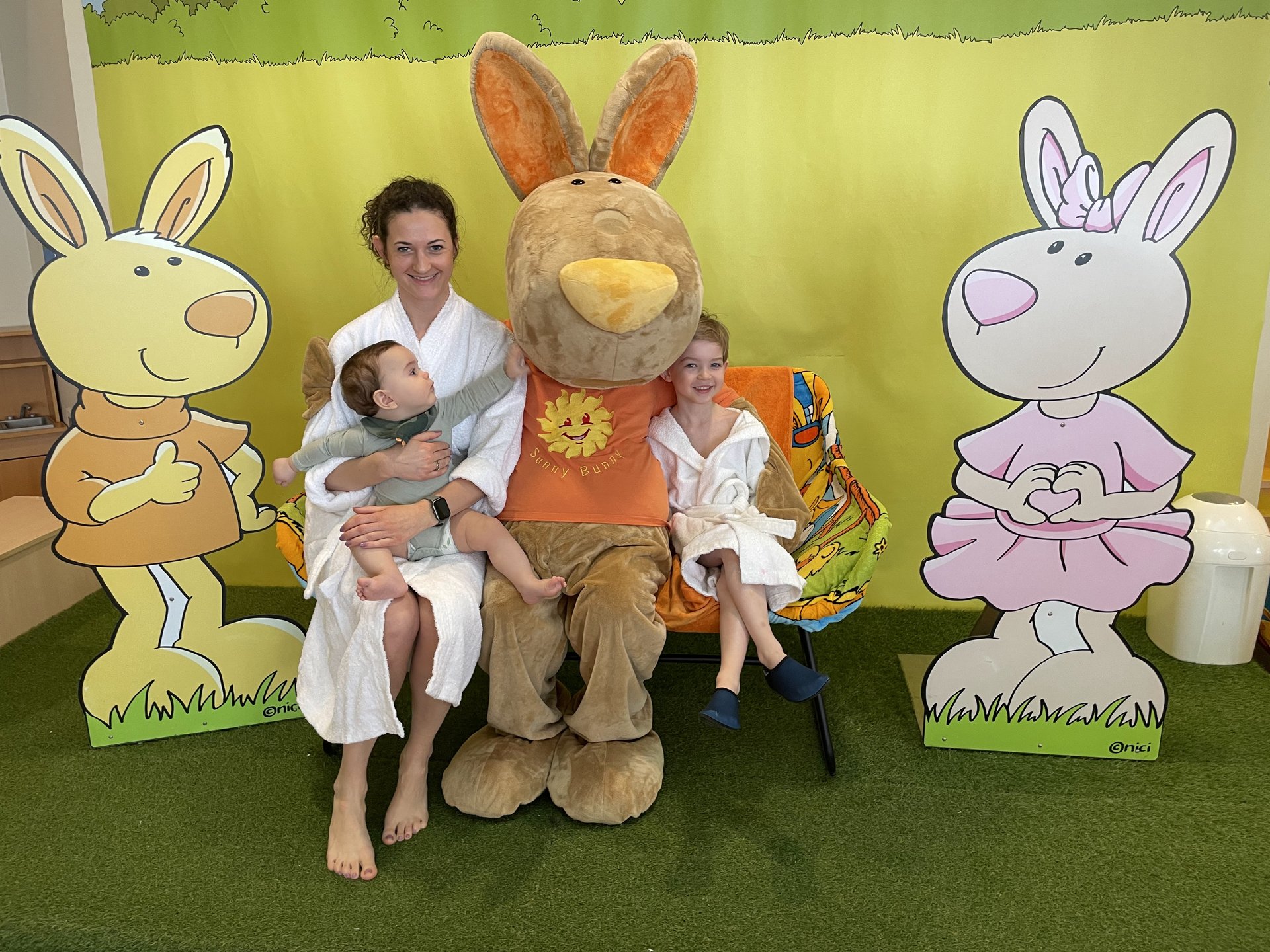 Mit wenig Gepäck in der Therme angekommen – denn Badetücher und Bademäntel gibt es gegen eine Gebühr an der Kassa –, schnell in den Bikini und die Badehosen gehüpft und los geht´s! „Wir steuerten gleich unser reserviertes Nestchen in der Baby World an, das ist besonders mit Kleinkindern sehr praktisch“, schwärmt Papa Patrick. „Man kann sich hier doch etwas zurückziehen, es gibt ausreichend Platz, um ein Nickerchen zu machen, um zu spielen oder aber auch um unser Baby Julian zu wickeln oder zu füttern.“ „Mit unseren Kleinen verbrachten wir viel Zeit mit Planschen in der schönen Baby World“, so Mama Magdalena. Ein Highlight für den 5-jährigen Leon ist der Besuch des 5D-Kinos in der Therme. Dann geht es weiter in die Fun World mit Wildbach, Wellenbecken und Partydance mit Maskottchen Sunny Bunny. „Wir gönnten uns danach ein bisschen Ruhe im Relax Pool und in der Baby Sauna.“ Mama Magdalena zieht es zum VR-Schnorcheln –„ unsere Kids waren dafür noch zu klein“. Dabei schwebt man auf einer Schwimmnudel, ausgestattet mit einer VR-Brille und einem Schnorchel, im Becken und kann eine von fünf Themenwelten erkunden.