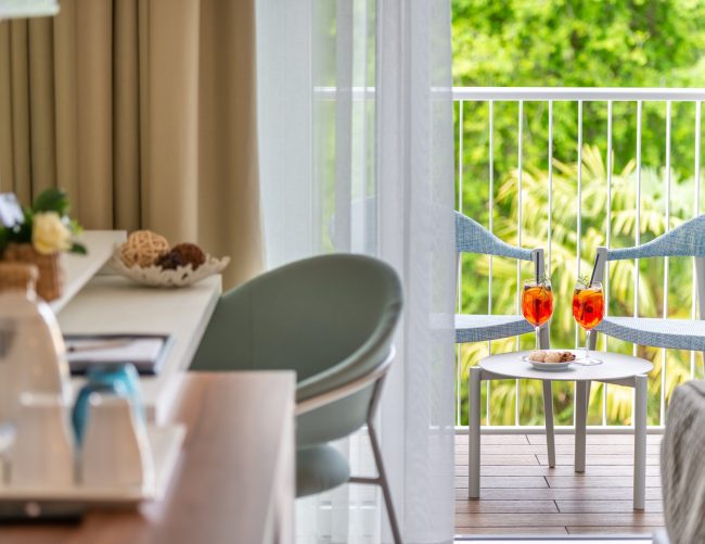 Bevor man das Hotel betritt, kann man es sich auf einer ebenerdig gelegenen Terrasse gemütlich machen. Das Interieur ist durchgängig im italienischem Design und hat ein ganz besonderes Flair.