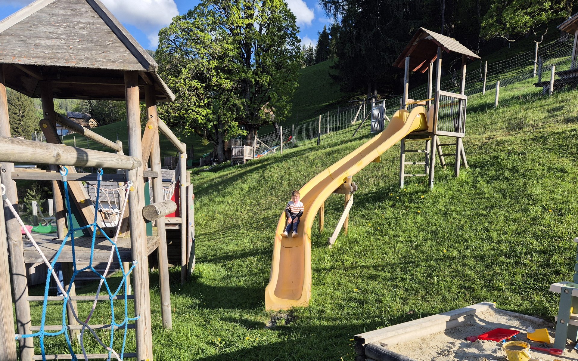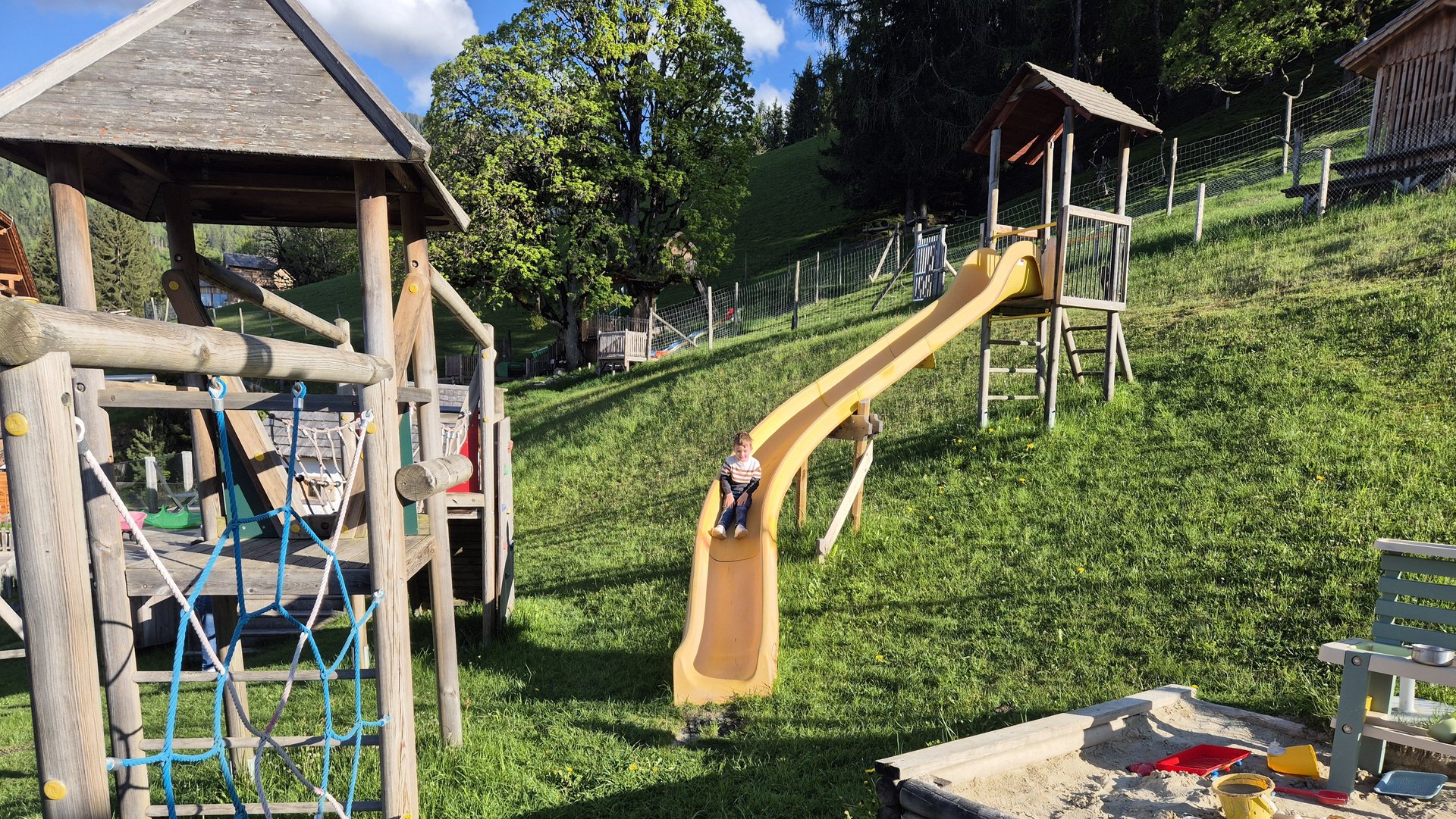 Kaum raus aus dem Wasser, geht der Spielspaß im Nature Hero Kids Club, in der „Aktiv Alm“ oder auf dem besonders originellen Spielplatz weiter. „Die Kinder waren kaum von den Rutschen und Spielhäusern wegzubringen“, lacht Papa Stefan. Wer aktiv werden möchte, nutzt die vielen Inklusivleistungen der Schladming-Dachstein Sommercard wie Bogenschießen, Waldhochseilgarten, Rodlbahn und Flyline am Rittisberg.