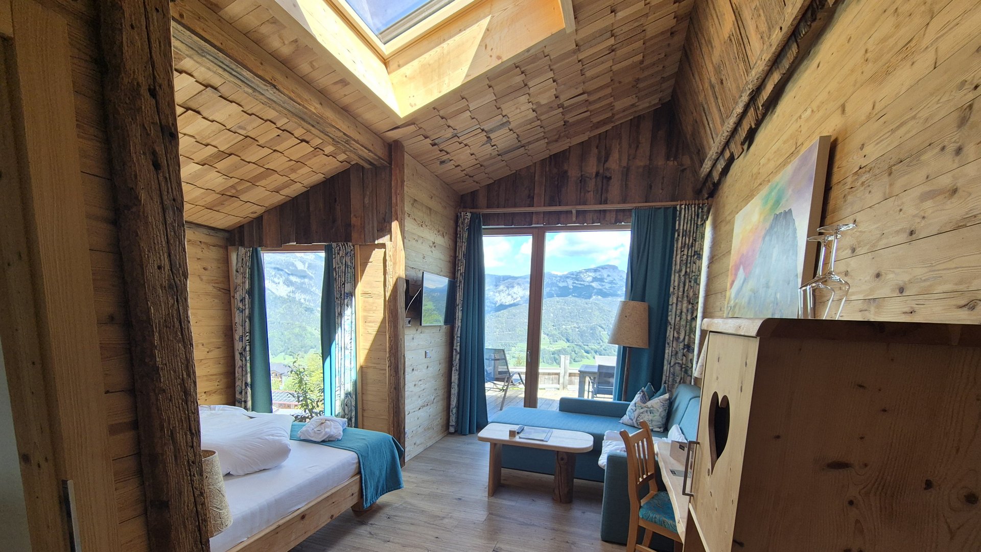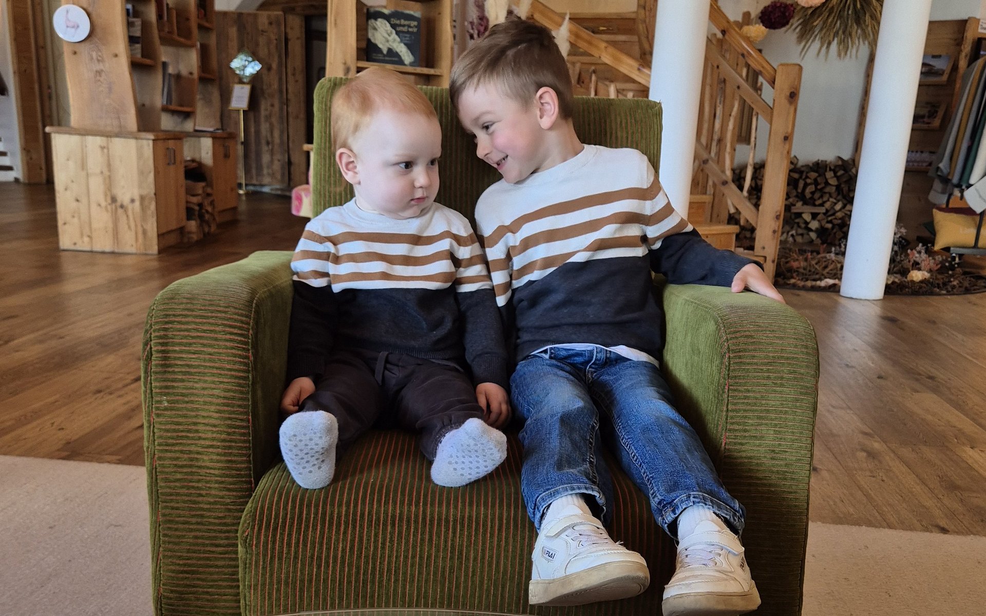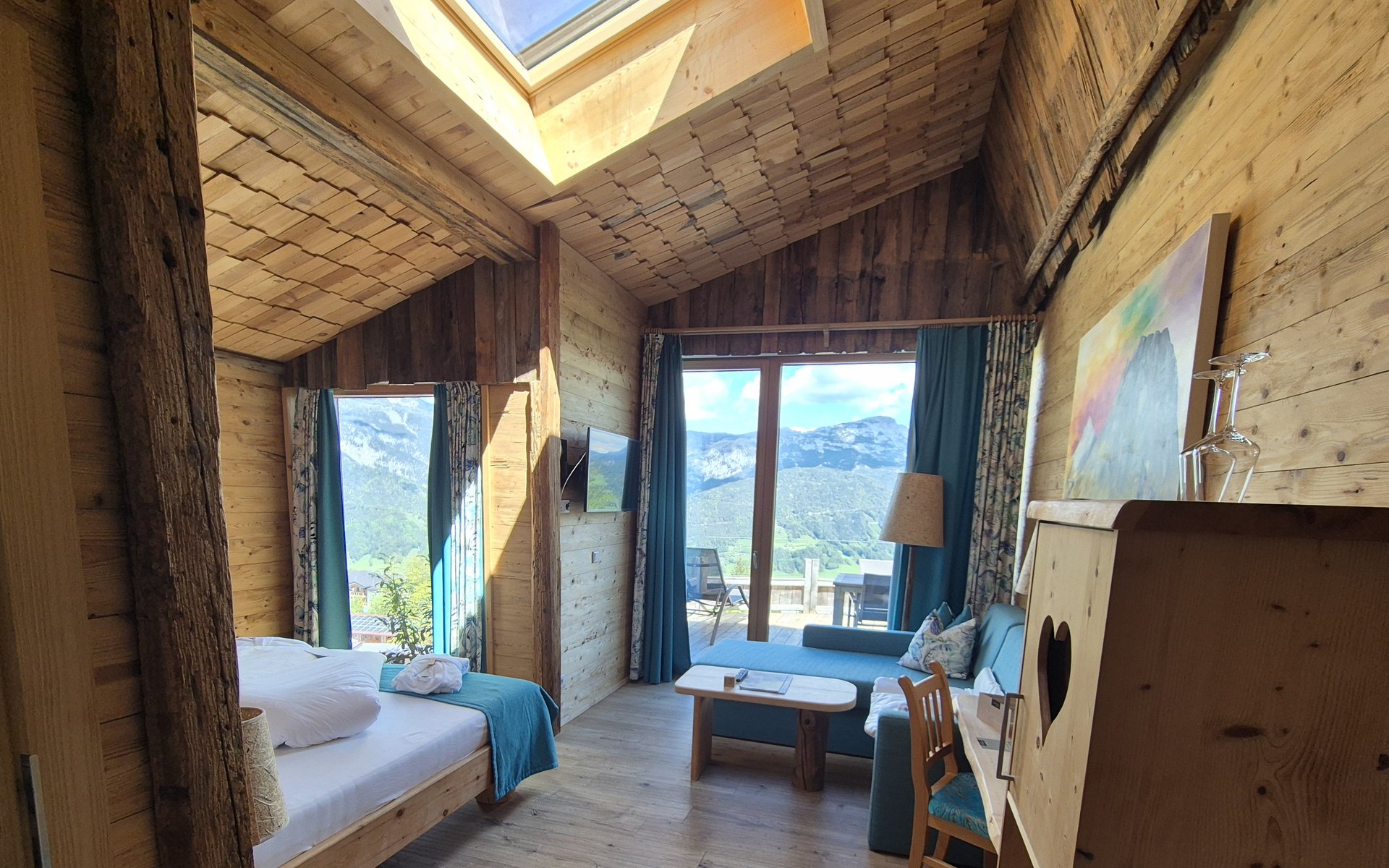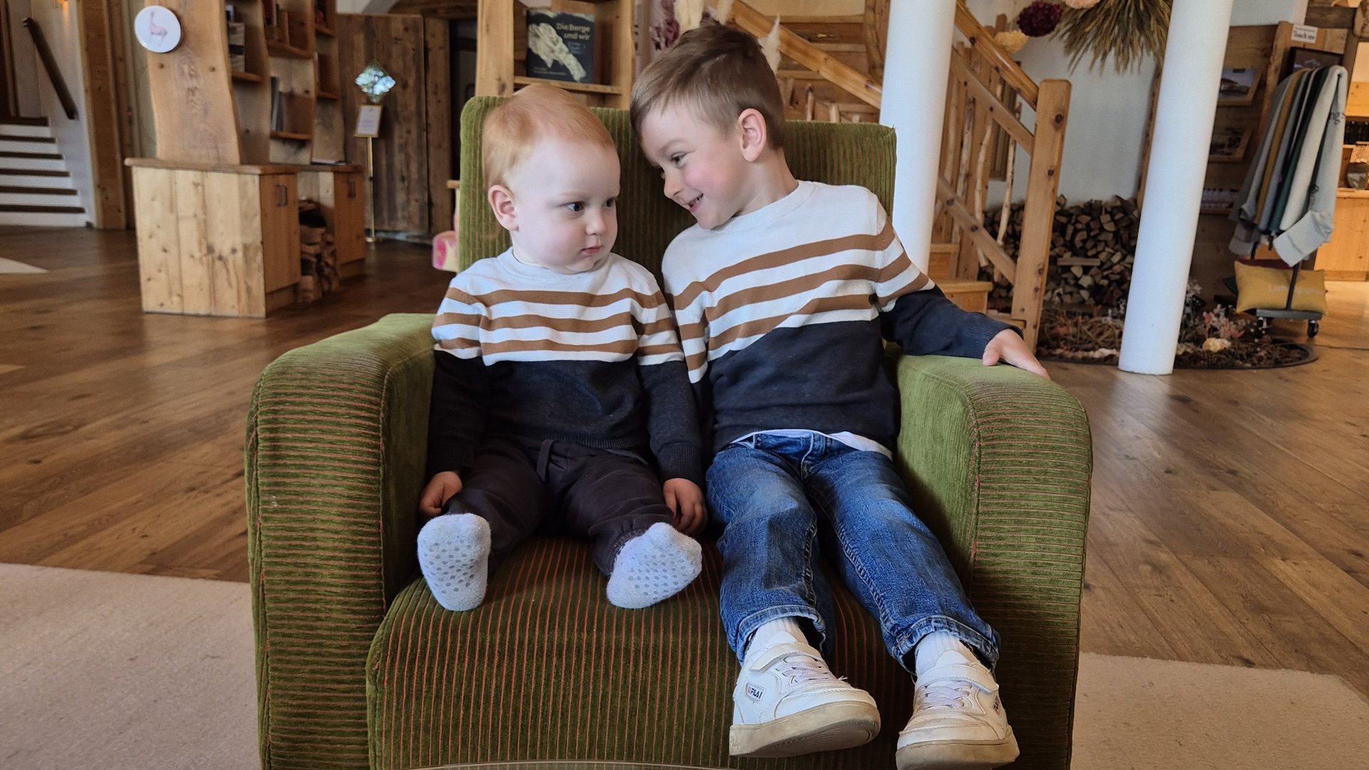 „Ein eigenes Zimmer mit Stockbett, Sofa, Fernseher und Terrasse.“ Die Freude beim vierjährigen Liam ist riesengroß. Aber auch Mama und Papa kommen aus dem Schwärmen nicht heraus: „Das Chalet war so geräumig, stilvoll und mit praktischer Ausstattung eingerichtet. Viel Holz versprüht eine Gemütlichkeit und die Draufgabe ist der fantastische Ausblick auf die Berge.“