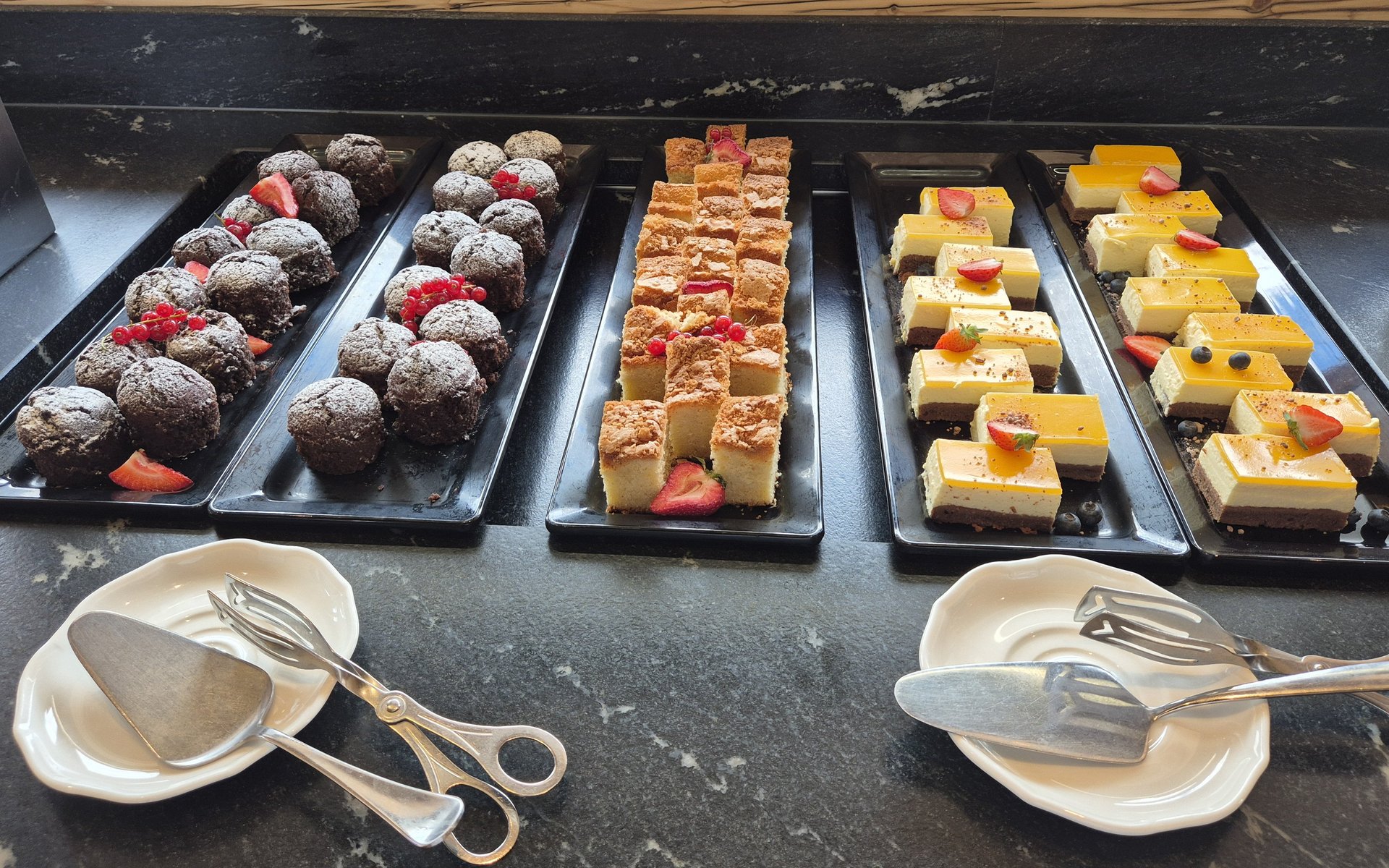 Regionalität spielt im Höflehner eine große Rolle – vor allem in der ausgezeichneten Hotelküche. Das erwähnen auch unsere Familienreporter positiv. Für Mama Helene ist das Kulinarium des Hotels sogar das Highlight des Urlaubs – ob das umfangreiche Frühstücksbuffet, der Light Lunch oder die Genusswelten beim sechsgängigen Abendmenü. „Ein großes Lob gilt der Küche, aber vor allem auch den Kellner:innen, die während unseres Dinners immer wieder Liam und Noah bespaßten, damit wir in Ruhe die Gaumenfreuden genießen konnten.“